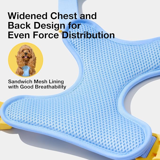- 【Choke-Free H-Shape Design】Widened chest straps + back D-ring distribute 30% less neck pressure – No pull dog harness prevents choking during sudden pulls, while lightweight materials of the harness ensure freedom of movement