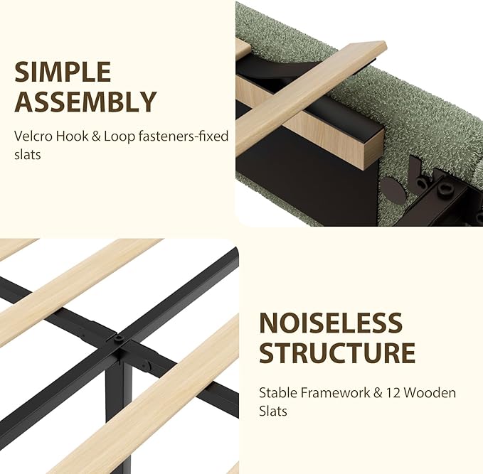 - Strong & Quiet-Thick wood and sturdy alloy make the bed frame durable. EVA strips keep it quiet. Sleep soundly in a stable, noise-free space