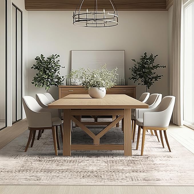 - Kids and Pets Friendly Rug: This vintage floor carpet designed with both pets and children in mind, the dining room rug prevents pet hair accumulation,making it easy to maintain.It's durable and easy to care for.Plus,its soft texture provides a comfortable and safe play area for little ones