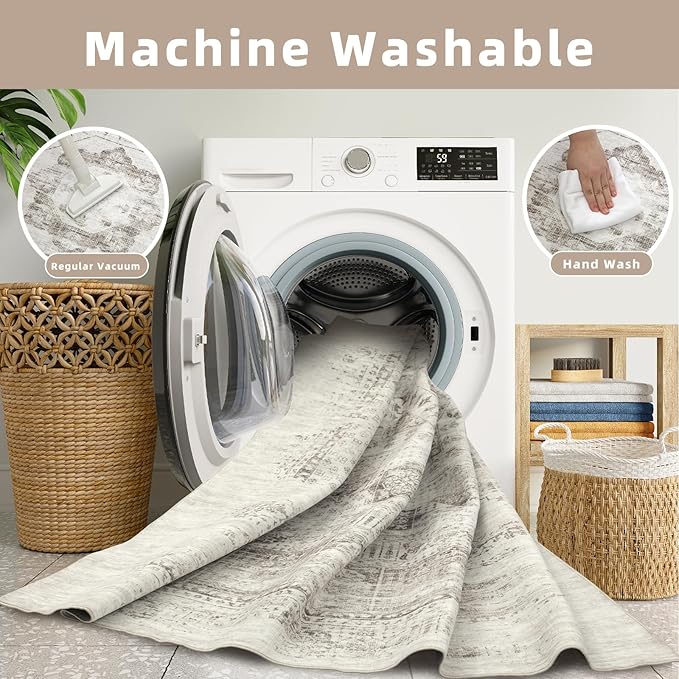 - Machine Washable Rugs: Many people enjoy adorning their homes with rugs, but often find cleaning them to be a challenge. Our 8x10 washable rug offer a solution to this problem. The 8x10 rugs for living room is fully machine washable and can also be conveniently cleaned using a vacuum, broom, or rug cleaner