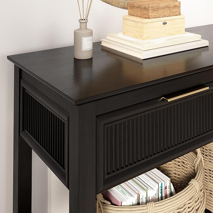 Bush Home Fluted Console Table with Drawers, Living Room Furniture, Camille Collection, Onyx Birch Black