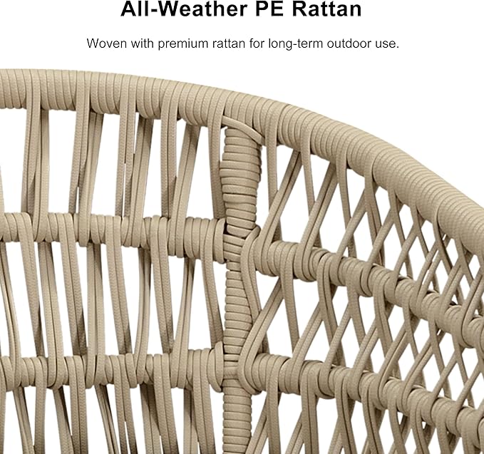 - PE Rattan Backrest: The chairs are thoughtfully designed with a PE rattan backrest, providing both style and durability. This intricate weaving technique not only adds visual appeal but also ensures long-lasting performance.