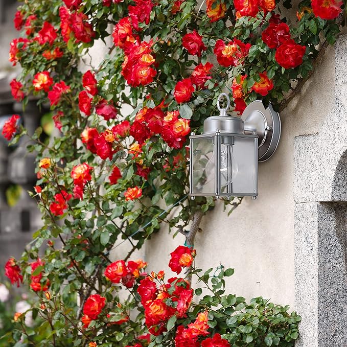 - DURABLE CONSTRUCTION: Our wall sconces are constucted with a strong and sturdy steel construction and a clear glass shade for maximum outdoor illumination and long-lasting reliable lighting; our wall sconce lights feature a waterproof seal and are designed to stand up to harsh outdoor weather elements