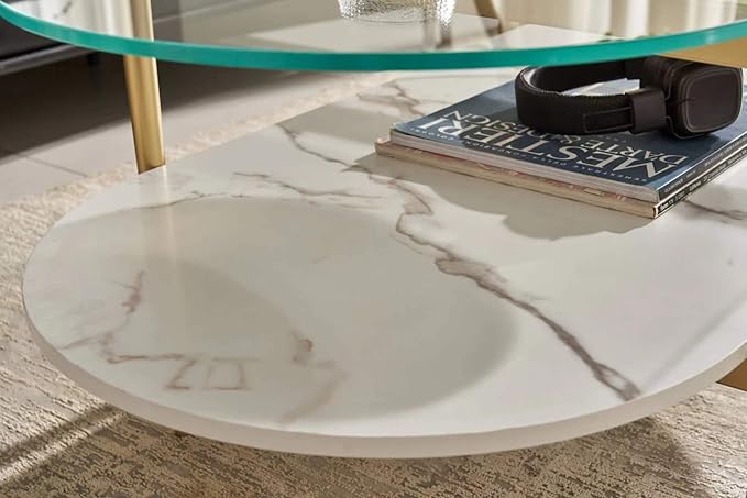 - 【Versatility】As both a living room table and a versatile glass coffee table, it is the ideal addition to any modern décor.The two-tier design offers generous display space for books, décor, and remotes on the lower shelf, while the ample glass top provides a spacious surface for drinks and entertaining.