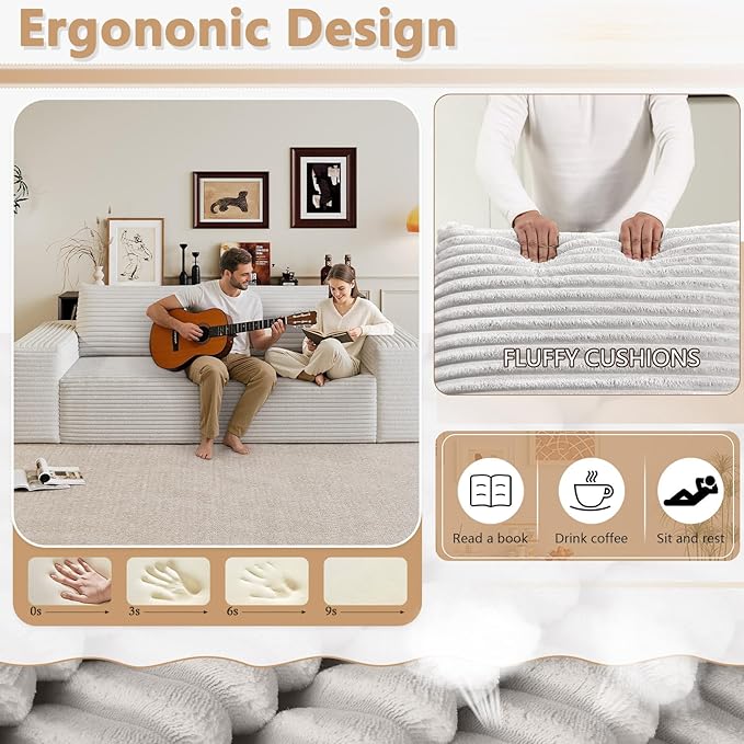 - 【Ultra-Soft Corduroy Cloud Comfort】Wrapped in premium corduroy fabric, this 2-seater cloud couch delivers year-round softness and breathability. The ribbed texture adds a chic, modern touch, while the cloud-like cushions invite you to sink in and relax—perfect for cozy evenings or lazy weekends.