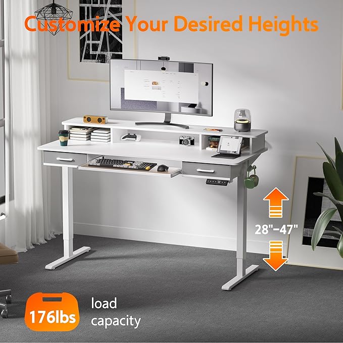 - Optimized for Work From Home: WALKINGDESK is dedicated to design muti-functional and ergonomic electric standing desk, improving home office environment. This stand up desk is made with industrial-grade carbon steel frame and built-in electric motor lift mechanism, max load 176lbs.