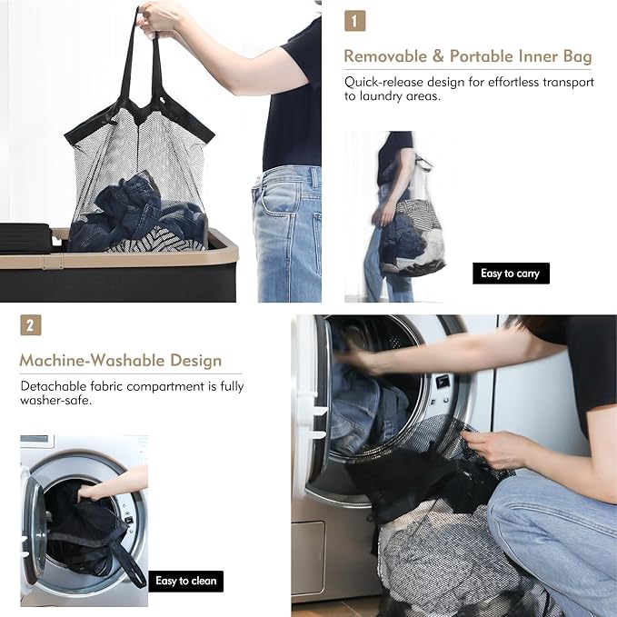 - Removable Inner Bags: The laundry basket features removable lid and two laundry bags for easy sorting and organizing of dirty clothes, ensuring a tidy setup