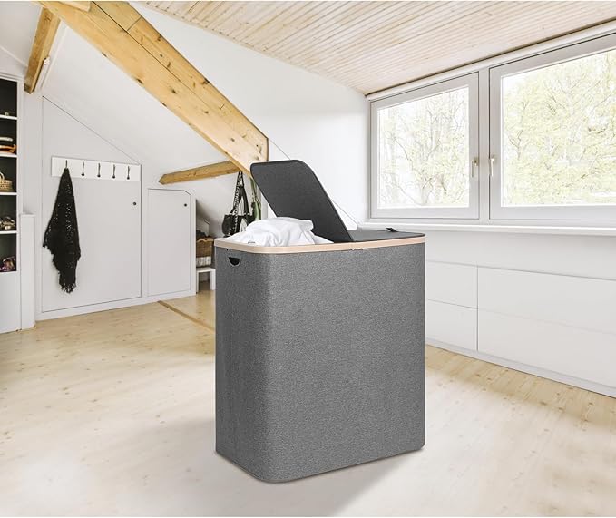 - Lidded Hamper with Dual Handles: The detachable lid keeps odors in the laundry basket and dust out. Its sturdy ABS plastic frame also serves as built-in handles, it is comfortable hold when carrying between rooms—whether to the laundry room, bedroom or bathroom