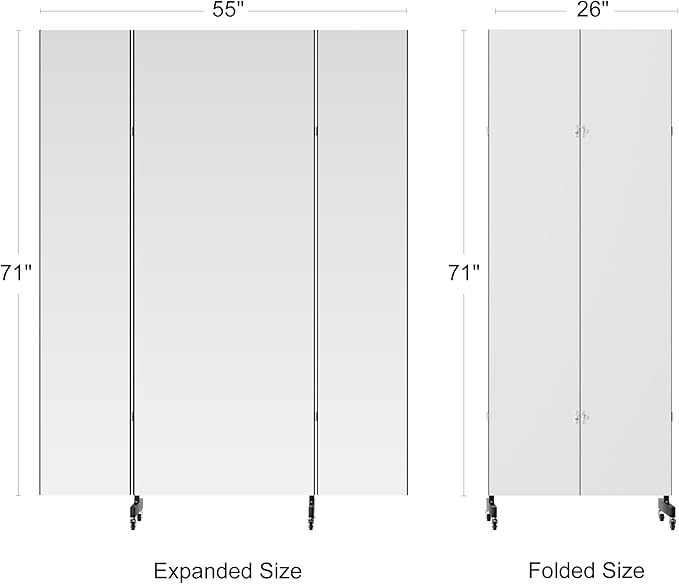 - 【Space-Saving Foldable Design & Full-Body Coverage】Fold the mirror flat against a wall or door in seconds for compact storage. Unfold to reveal a seamless, floor-to-ceiling view—perfect for dance rehearsals, yoga flows, or outfit checks—without permanent installation.