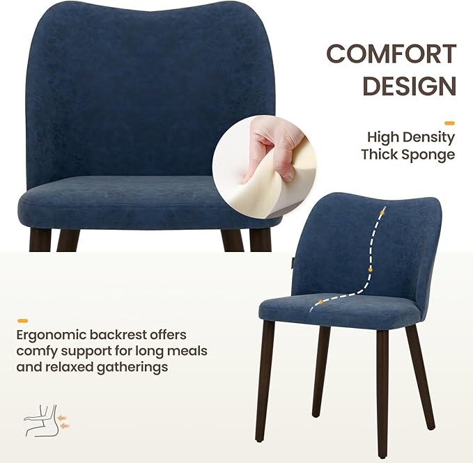 - [Comfortable & Supportive Seating] Built for comfort, these dining chairs are equipped with thick, high-density foam cushions and an ergonomically curved backrest, offering excellent support for extended sitting. Whether you’re enjoying a family meal, working at the table, or simply relaxing, these chairs provide both comfort and support throughout the day.