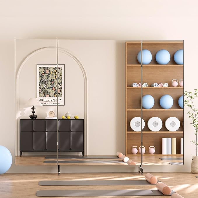 - 【Ultra-Lightweight & Shatterproof Nano-Tech Safety】Weighing just 1/5 of traditional glass mirrors, our nano-tech material (0.04mm flexible film + reinforced backing) ensures shatterproof durability—ideal for homes with kids or pets. Enjoy crystal-clear reflection for precise posture checks and workouts.