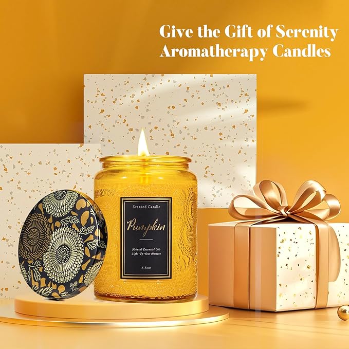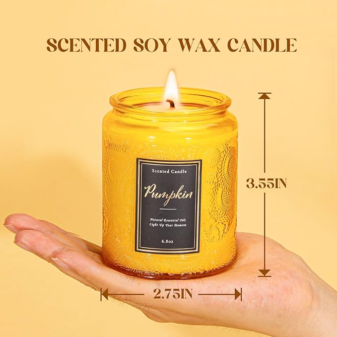 Pumpkin Scented Candle for Home, Luxury Glass Candles Soy Wax, Autumn Aromatherapy Candle Gift, Fall & Halloween Home Decor, 6.8 oz
