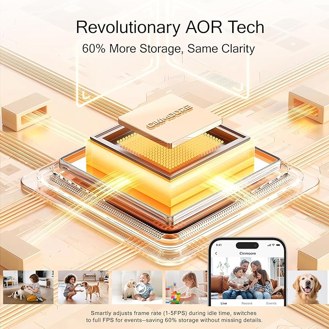 - Indoor Camera's SD & Cloud Storage: Avoid subscription traps -24/7 recording to SD card (expandable to 512GB, not included). Optional AWS Cloud with bank-level security locks. With our LoFR (Local Face Recognition) and AOR tech, you can easily tag clips of your family's faces and record 3x longer than average