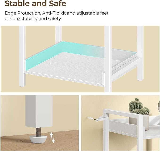 Rolanstar Bookshelf, 4-Tier Storage Rack, Narrow Corner Bookshelf, Display Wooden Shelves for Living Room, Bathroom, Balcony, Kitchen,White