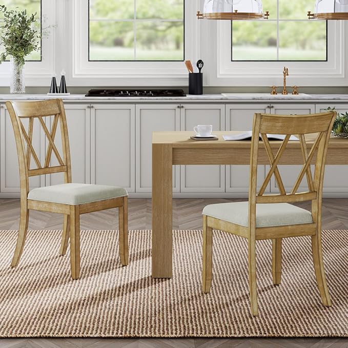 - Timeless Farmhouse Charm - Add rustic warmth to your home with these classic cross-back dining chairs. Their natural wood texture and clean lines blend easily into modern or traditional settings, making every meal feel like a cozy countryside gathering.