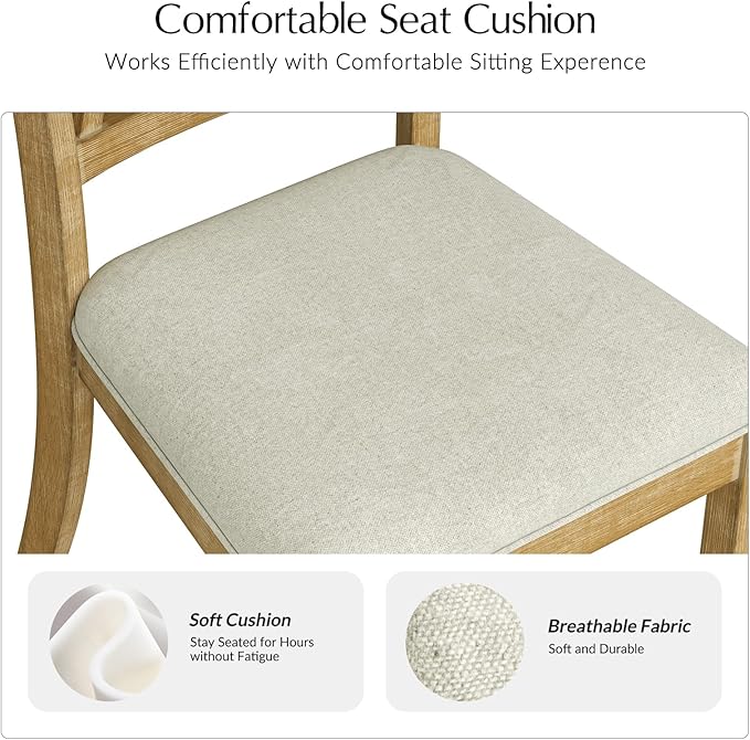 - Soft and Breathable Seat - Wood dining chairs with thick, high-resilience foam topped with soft fabric offers lasting support. The breathable cushion keeps its shape during long meals or conversations, adding comfort to your dining experience.