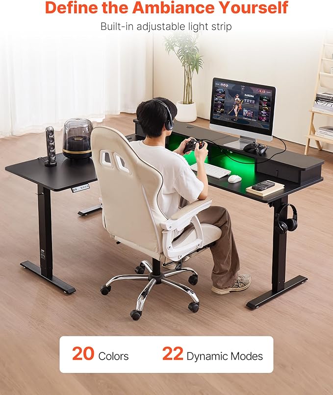 - Powerful Motors & Smart Panel: The L-shaped standing desk is equipped with dual powerful motors for smooth height adjustment at a speed of 0.49 in/s / 12.4 mm/s. The memory button records your ideal position, allowing you to easily switch from your ideal sitting posture to standing with one touch