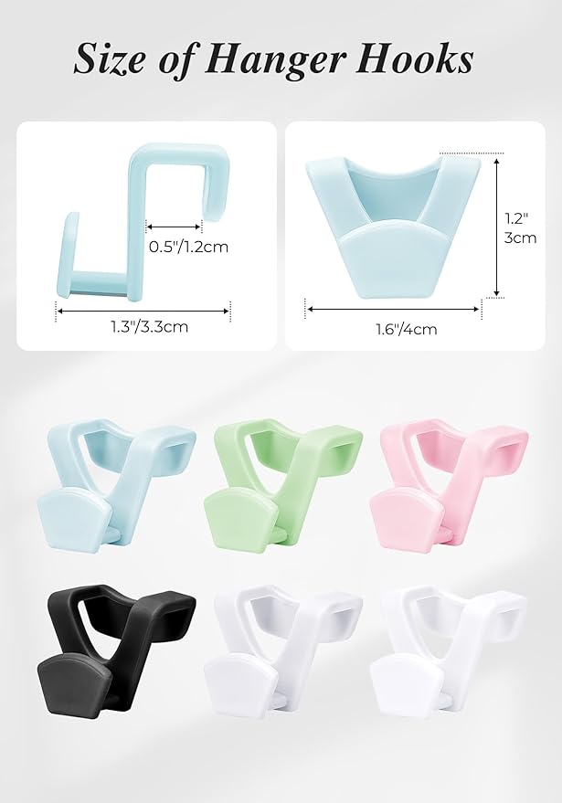 - 【Dorm Essentials for College Students 】These ultra space saving hanger hooks measure 1.6”x1.3”x1.2”(LxWxH) and are suitable for many different kinds of hangers, including plastic hangers, velvet hangers, wooden hangers, metal hangers, sponge hangers, as well as baby clothes hangers, pants hangers, and skirt hangers. Our magic hangers can be used not only houses but suitable for apartments and dorm or other limited spaces, dorm room essentials for college students girls.