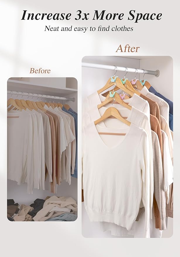 - 【Multipurpose Hanger Hooks】In addition to hanging clothes, the hanger hooks can also be used to hang bags, hats, ties, etc. You use the cascading hanger hook to coordinate your clothes and accessories. Easily organize your clothes by season, style, type and color, and say goodbye to a narrow or cluttered wardrobe.