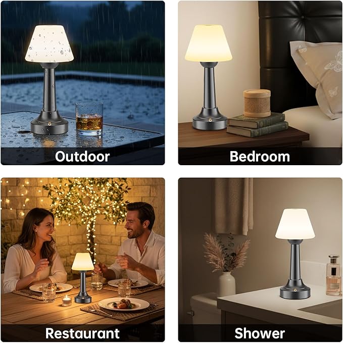 - Cordless & Portable for Any Room or Mood:No cords. No outlets. Just grab and place it anywhere—bathroom counter, shower shelf, nightstand, patio table, or dining setup. Its compact footprint and cable-free design instantly elevate ambiance wherever you set it down