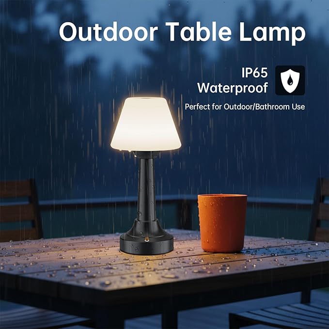Cordless Table Lamp, Rechargeable Touch LED Lamp with 3 Color Temps & Stepless Dimming, Portable Battery Operated Light for Bathroom, Shower, Bedroom, Patio, Indoor/Outdoor Use, IP65 Waterproof