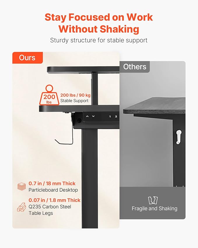 - Powerful Motors & Smart Panel: The L-shaped standing desk is equipped with dual powerful motors for smooth height adjustments at a speed of 0.49 in/s / 12.4 mm/s. The memory button allows you to save your ideal position and easily switch from sitting to standing with just one touch
