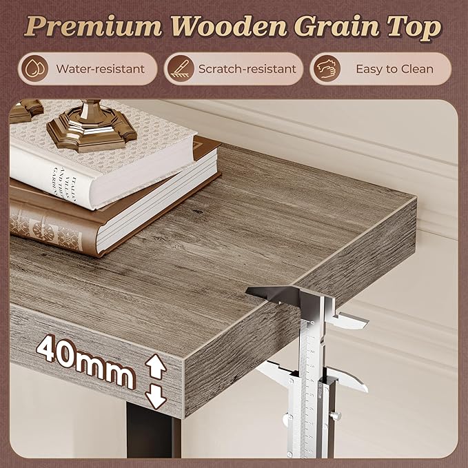 - 【Extra Thick Tabletop and Open Shelf】Crafted with 1.57" thick particleboard made of FSC-Certified wood, the tabletop of the behind couch table offers a solid, durable surface for everyday use. The vintage wood texture adds warmth and depth to your decor, while the surface is water-resistant, scratch-resistant, and easy to clean