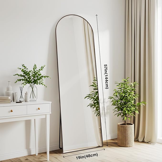 - Aluminum Alloy Framed Arched Floor Mirror in Graylish Driftwood Look: The arch full length standing mirror features aluminum alloy frame wrapped wood grain sticker that can complement any type of room decor, adding a touch of elegance to your room. This full body mirror with sleek looking is also great for selfies or pictures in general