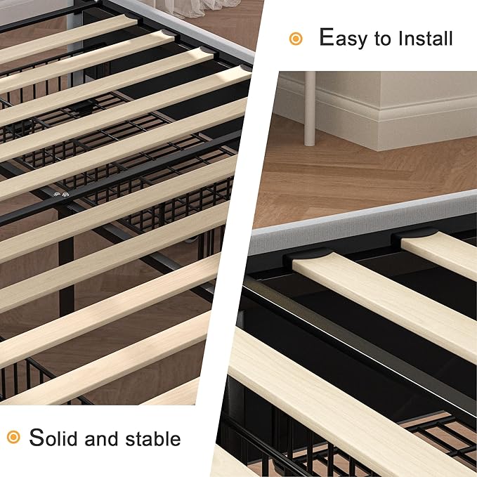 - [Solid Support System & Noise-free Design] The Interior heavy-duty steel framework combined with solid wooden slats allow air circulation and extend the use of the mattress while providing durability and stability with a maximum load capacity of 800 lbs. The attached EVA foam strip also reduces noise effectively and provides a good night's sleep.