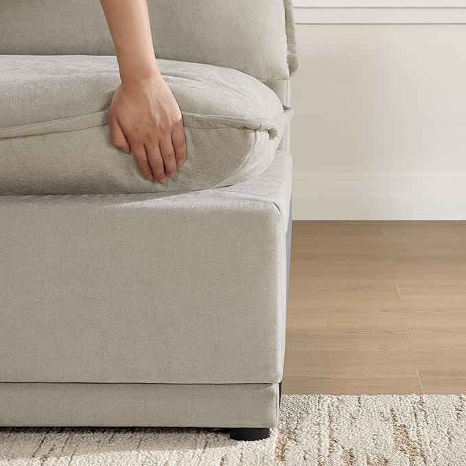 - Unmatched Comfort with 7-Layer Cushioning - This modular sectional sofa boasts a 7-layer cushion structure, offering superior comfort. Soft fabric, plush fiber, supportive foam, and pocketed coils provide a luxurious yet durable support with a softness level of 3 on a 1 to 5 scale. Removable back cushions allow for customizable seating arrangements, adapting to your space needs.