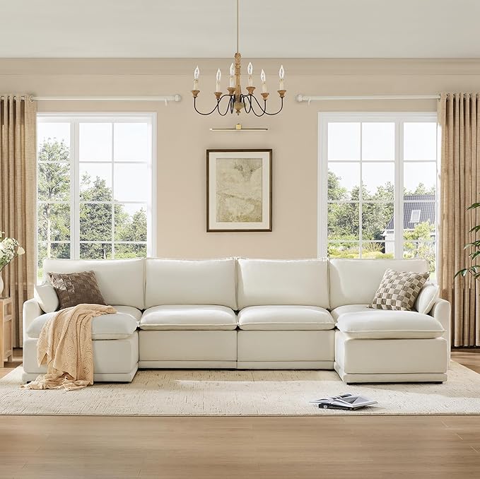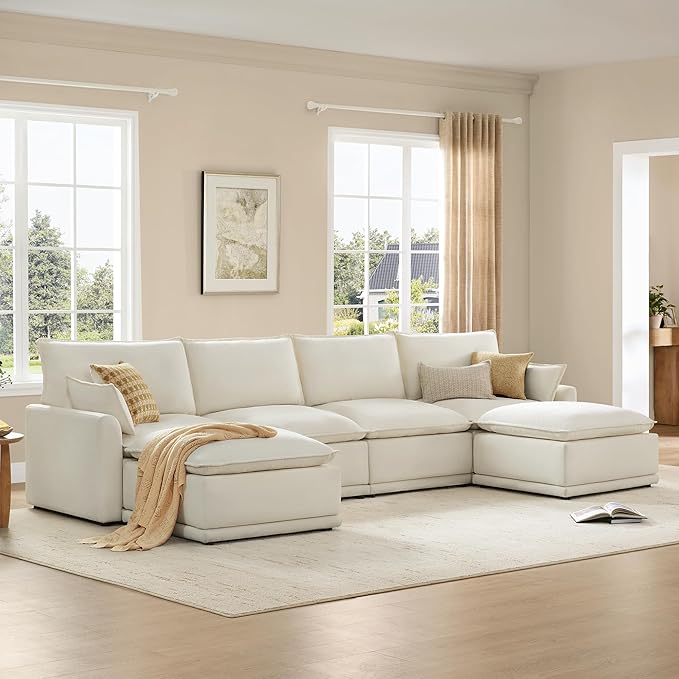 CHITA 147" Oversized Cloud Couch, Modern Modular Sectional Sofa Set for Living Room, 6 Seater U Shaped Sectional Couch, Cream