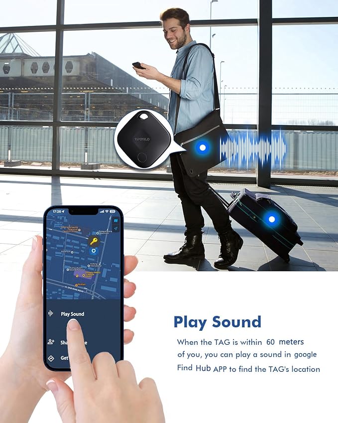 - Works with Google’s Find Hub: Yipoyilo Bluetooth tracker works with Google’s Find Hub and work on all Android phones. Attach it to keys, wallets, backpacks,and enjoy real-time location tracking through trusted network(Please note: It is not compatible with Apple phones or iOS systems)