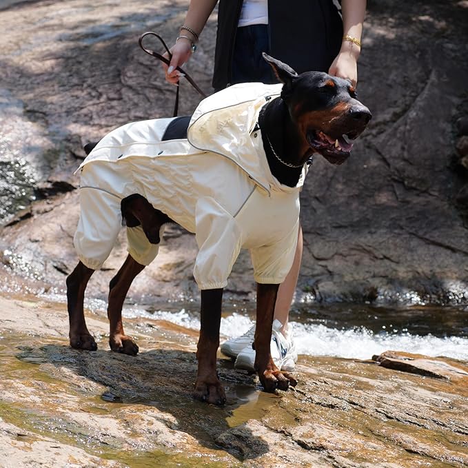 LOVELONGLONG Waterproof Dog Raincoat with Removable Hood – Outdoor Full Body Dog Jacket, Windproof Snowproof Shell Suit – All Season Pet Rain Gear Ivory XXL