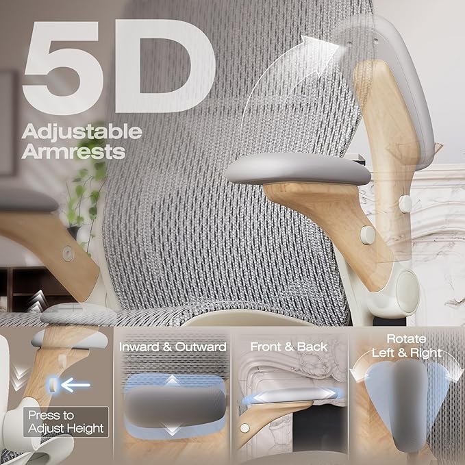 - 【Smart Space-Saving Features】 5D Flip-Up Armrests with skin-friendly panels - 27% denser EVA foam padding achieves Zero-Pressure Contact, it can be adjusted at Height/width/forward/backward/rotate/flip function, a space-saving flip-up design that tucks neatly under standard desks