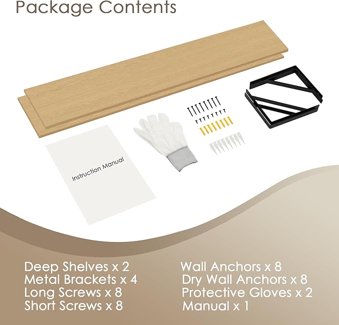 - 【Easy to Assemble】Easy-to-read instructions give you a step-by-step guide. Accompanying tools and numbered accessories make installation quick and easy. Two types of expansion screws are provided for different wall materials. Unobstructed design of metal brackets allows you got the screw in effortlessly