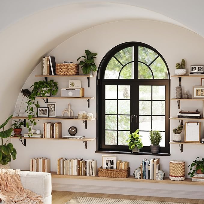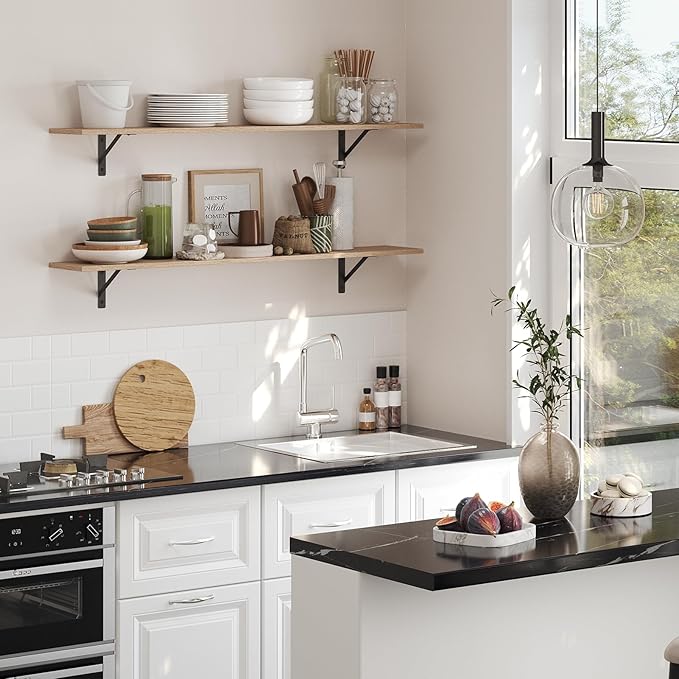 - 【Wide Application】Extra long shelves for wall storage is gospel of small family to enjoy the tranquility of home. Large floating shelves allow you to store books, games, decorations, plants, towels, photos, collectibles etc. Even to be an ideal play area for your cats. Create additional storage in living room, bathroom, bedroom, closet, balcony, study, kitchen, laundry, bar area, pantry and office