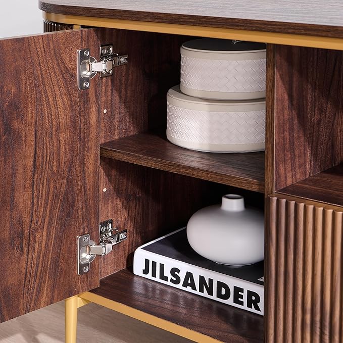 - DURABLE, WELL-FINISHED: Fluted panels are manufactured using blister molding techniques known for their high quality and consistency. The faux marble top is made of melamine veneer, which not only has a delicate texture, but also ensures long-lasting durability, water resistance and easy maintenance. And, the gold metal handles and cylindrical legs add to its contemporary vibe, creating a personalized and distinctive aesthetic.