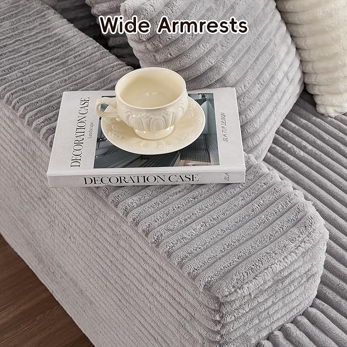 108" Boneless Couches for Living Room, Modular Sectional Sofa with Oversized Chaise, L-Shape Cloud Couch with Deep Seat, High-Density Memory Foam, No Assembly Required, Plush Corduroy Grey