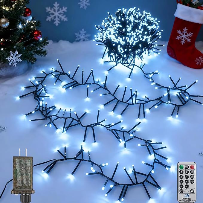- 【Super Bright Cluster Lights】Create a magical holiday atmosphere with our ultra-dense cluster lights, 52 FT up to 800 LEDs in cool white for Christmas. These cluster lights and firecracker light strings deliver 4X brighter output than ordinary string lights, making them perfect for Christmas decorations, Christmas lights outdoor, and year-round festive use.