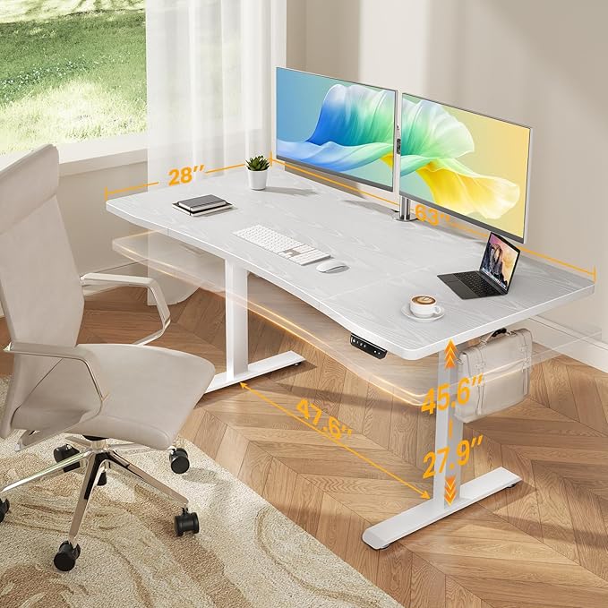 - Spacious Worksurface: With its expansive 63" x 28" desktop, this standing desk effortlessly accommodates multiple monitors and office supplies, providing ample space for an organized and efficient workflow.