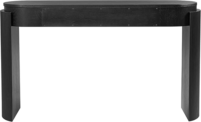 55.1" Entryway Narrow Console Table with Drawers, Oval Top & Fluted Legs, Natural Wood Grain Sofa Table for Hallway, Foyer, Behind Couch, Accent Table for Living Room, Solid Wood + MDF (Black)