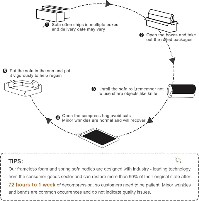 - 【No Assembly Required】—This memory foam couch set comes vacuum-packed, with each module as a sofa couch in a box, ready to use out of the box and fully restoring its shape within 3–7 days—just open and enjoy.