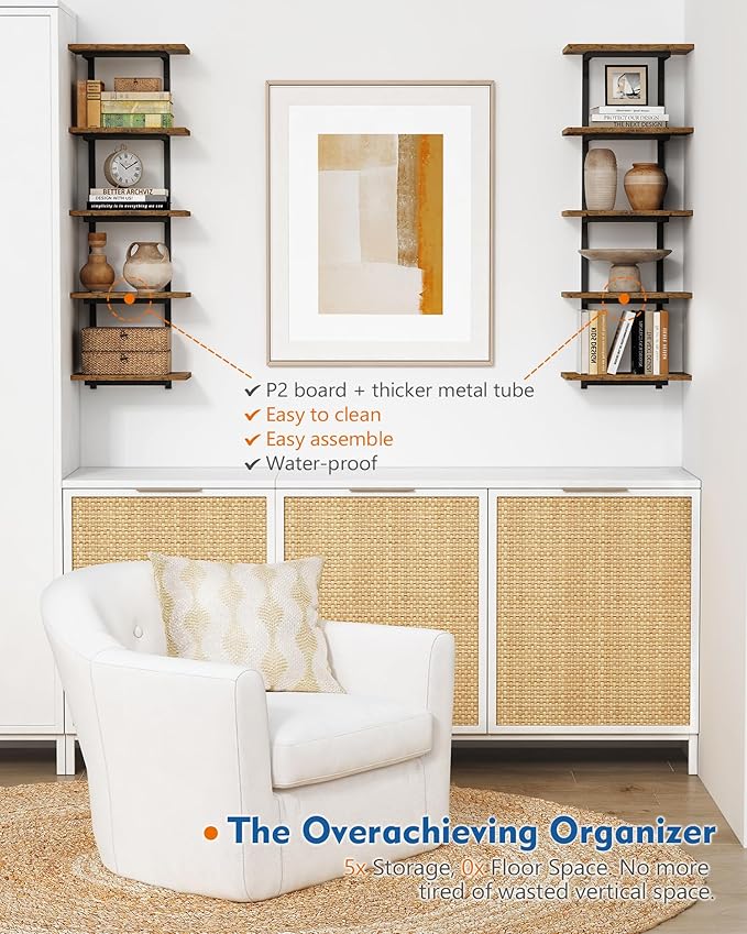 - [Versatile & Multifunctional] The tiered floating book shelves for wall are no limit to creativity! Place them as wall bookshelf for bedroom, living room, office, kids room, and it can even be used in the kitchen as a storage rack. The floating shelf unit is going to fit any space and any style thanks to their essential classic design.