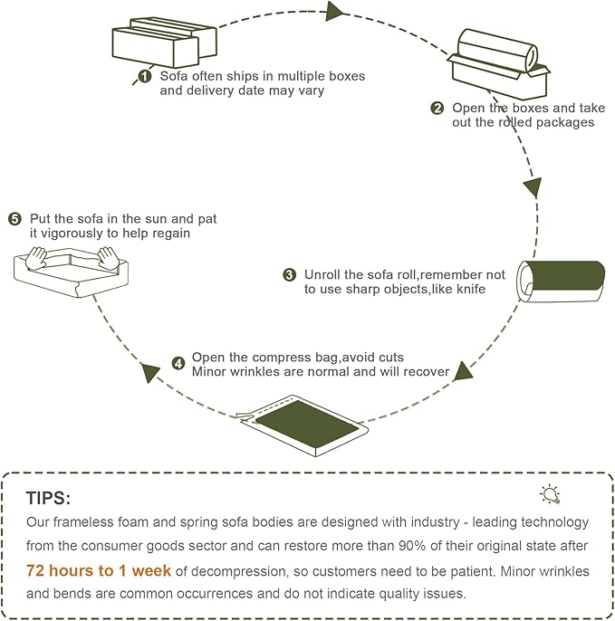 - 【No Assembly Required】—This memory foam couch set comes vacuum-packed, with each module as a sofa couch in a box, ready to use out of the box and fully restoring its shape within 3–7 days—just open and enjoy.