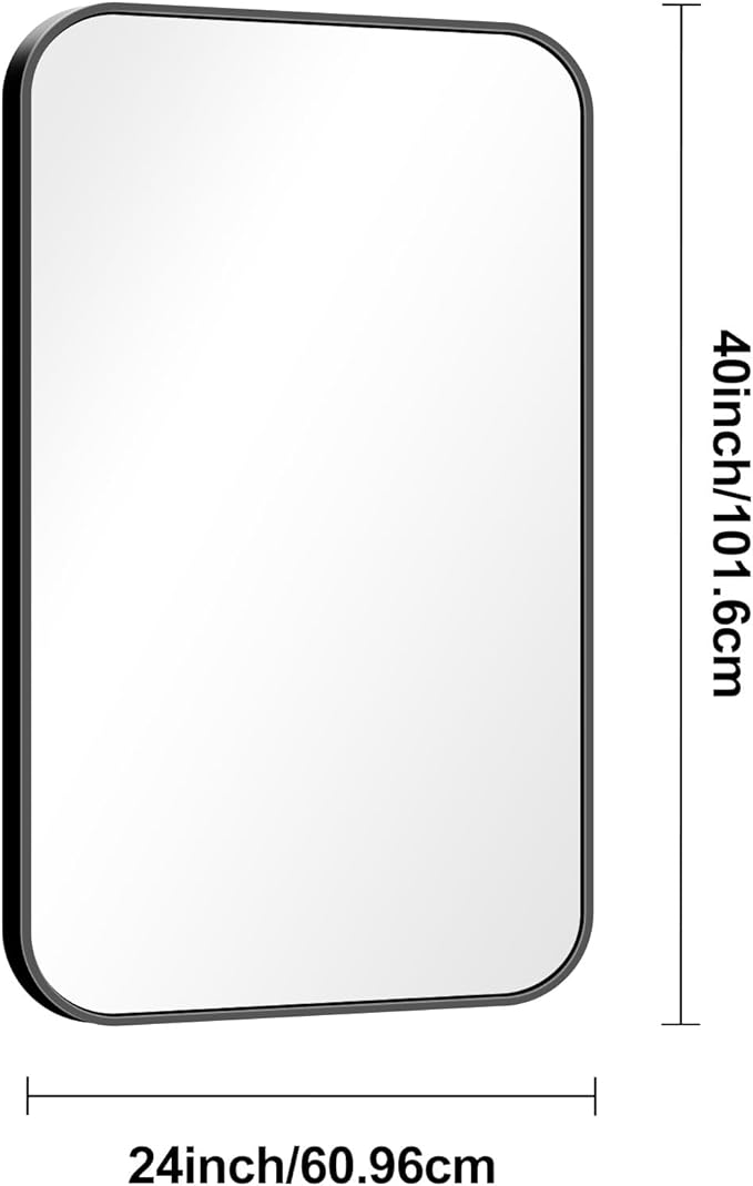 - ROUNDED CORNER DESIGN :The 24x40 inches mirror features an elegant rounded corner design and measures 24" x 40" Its unique shape adds a touch of sophistication and upscale beauty to your home.