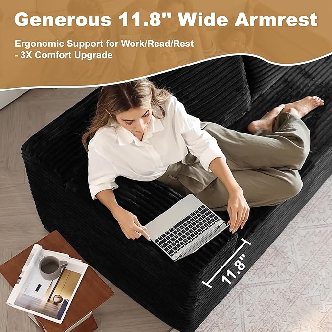 - Modular Sectional Sofa: Experience the ultimate in relaxation with this cloud couch–inspired L-shaped couch, designed for both comfort and style. Featuring clean lines, a sleek modular structure, and ultra-soft corduroy fabric, this sofa maximizes space while creating a cozy, inviting atmosphere. Perfect for living rooms, apartments, or bedrooms, this corner sofa adds a timeless, sophisticated touch — making your space feel warm, inviting, and truly your own. Bring home comfort and style that you’ll be happy with every day.