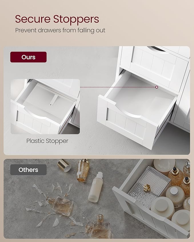 VASAGLE Storage Cabinet with Drawers, Freestanding Floor Cabinet with Door, 11.8 x 21.7 x 32.3 Inches, Adjustable Shelf, for Bathroom, Living Room, Kitchen, Cloud White ULHC041WH01S