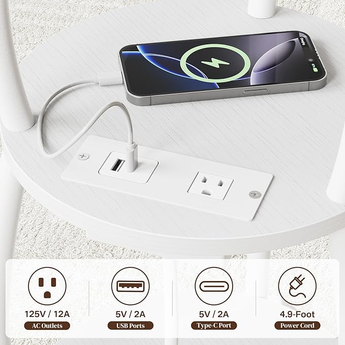 - Integrated Power Hub for Ultimate Convenience: This side table is your perfect modern companion, featuring a built-in charging station with 1 standard AC outlets and 2 USB ports (5V/2A). Place it by your bed or sofa to power your lamp, charge your phone/tablet, and keep all electronics within easy reach, eliminating the need to search for wall sockets and reducing cord clutter.