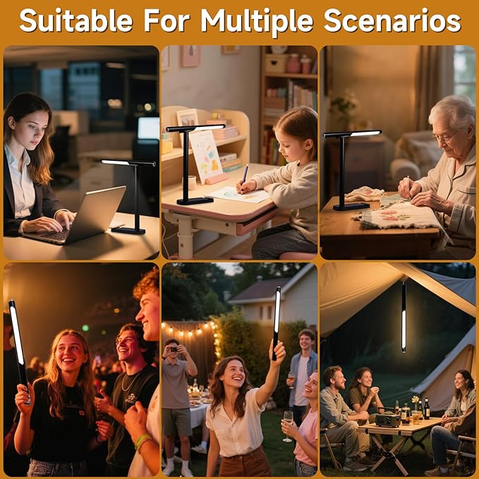 - 【 Magnetic - Multifunctional LED Desk Lamp】The LED desk lamp features a flexible magnetic design for versatile lighting. Adjust the angle easily with magnetic suction, detach it as a portable flashlight, or use it as a compact handheld light for on-the-go needs. Perfect for travel, remote work, or entertainment, its multi-function design suits students, professionals, and anyone who values convenience.