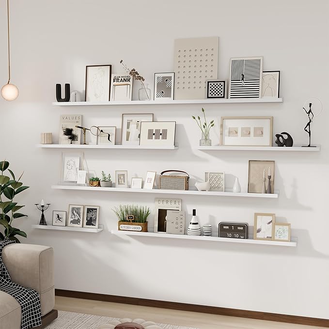 - Dual Picture Frame Shelves: Customize Your Space with Our Dual long picture ledge shelf. This set includes two versatile picture ledge shelf, perfect for personalizing your home. Whether you're creating a family photo gallery in the hallway or showcasing your collectibles, these ledge shelves provide the ideal solution. Ensuring strength and reliability for all your display needs